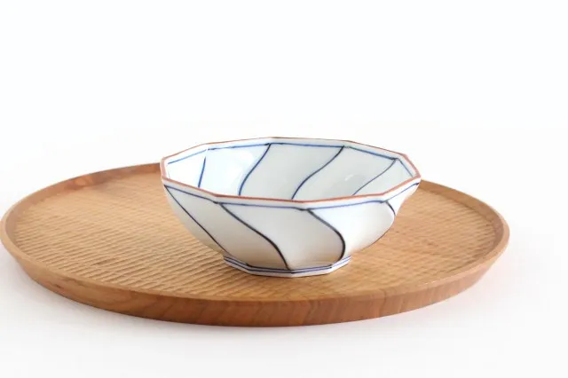 六角豆鉢 チェック 半磁器 有田焼