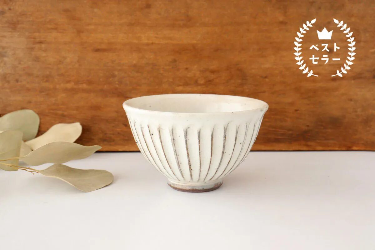 カンナで一本一本削いで模様を付けた、職人の手作業感が伝わってくる粉引削りシリーズ。