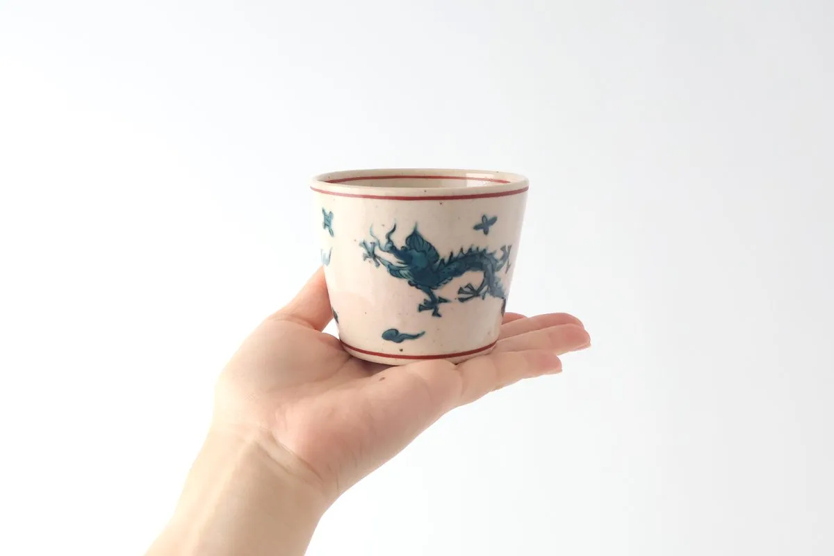 側面に、2匹の龍が描かれた蕎麦猪口。